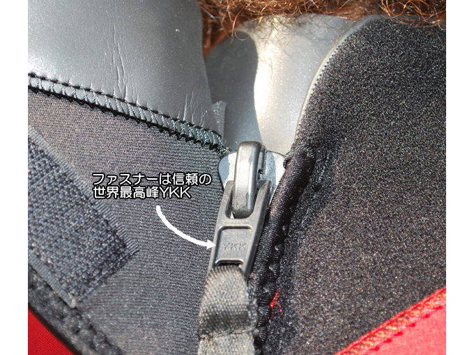 ●背中のファスナー両内側スキン素材を採用し、防水性をアップ!