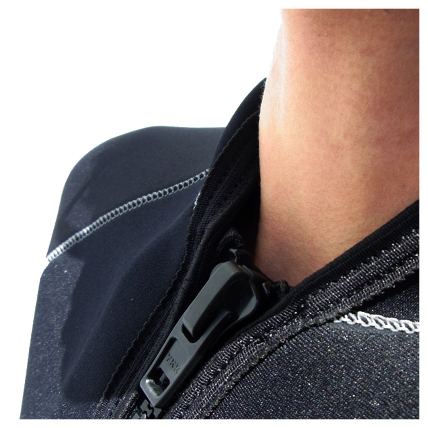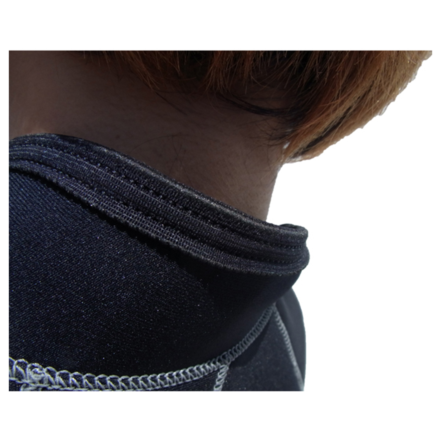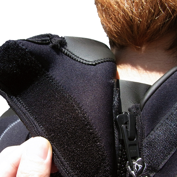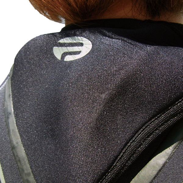 ドライスーツのネックの様に折込式のスキンシールドです。薄くできているので首へのつきあげが軽減されます。