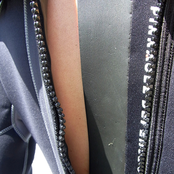 手首からの水の浸入を防ぐシステムです。ファスナーより上に3cm程のメタルスキンのシールドがあります。