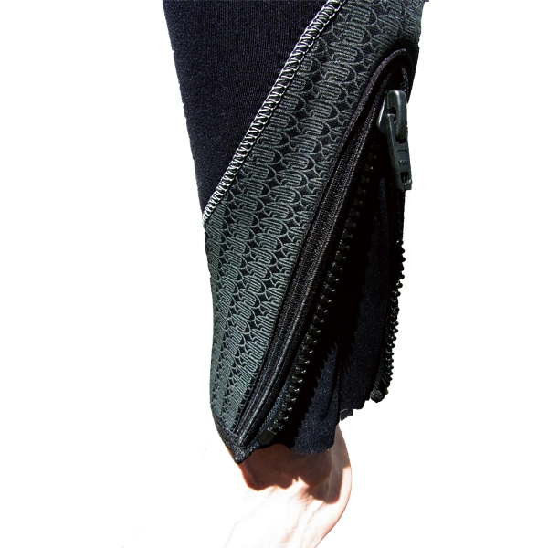 ファスナーから水の浸入を防ぐためのスキンラバー製シーリングシステムです。足首部をガードいたします。